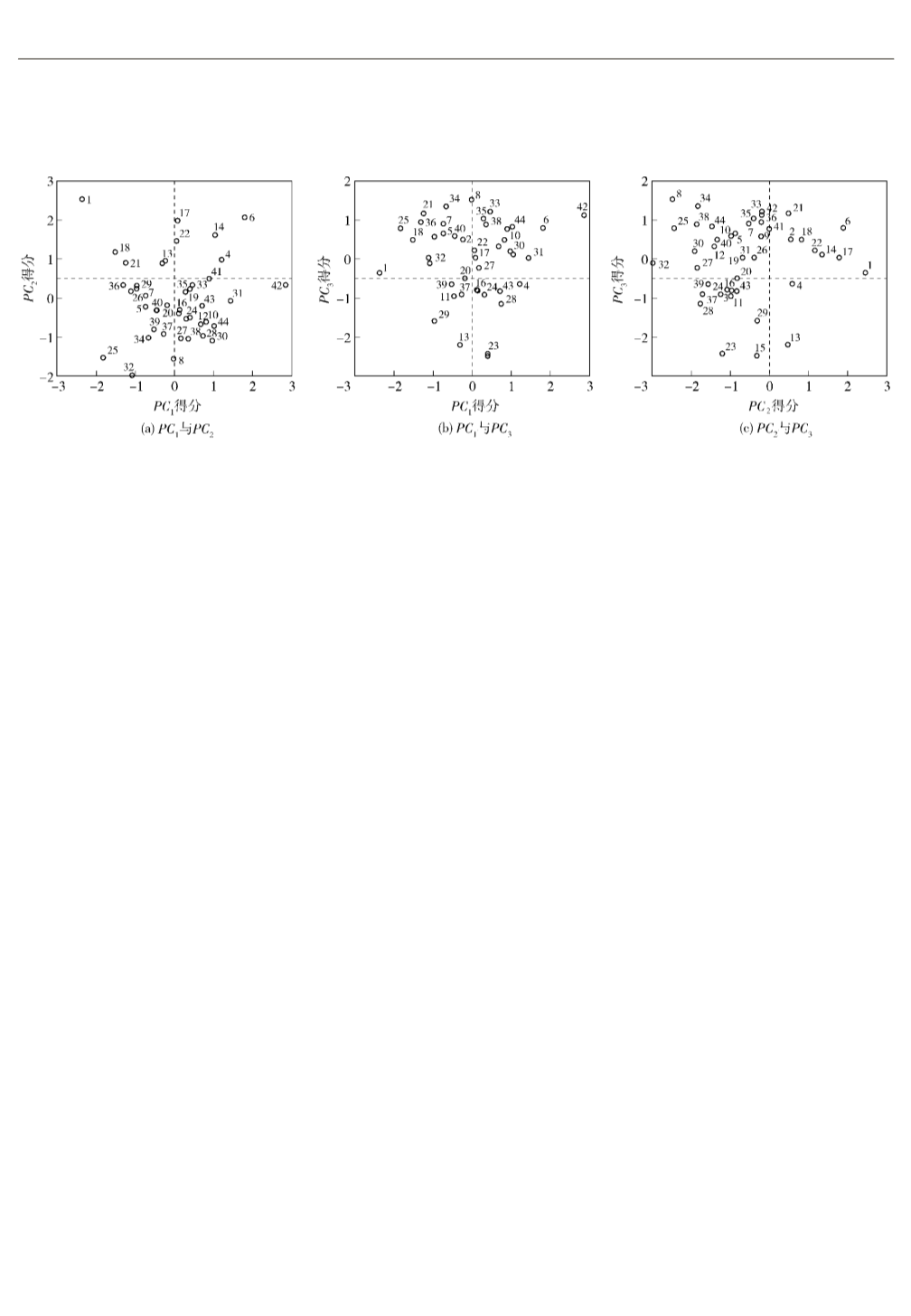 Fig. 2摇 PCA scores for 44 potato cultivars